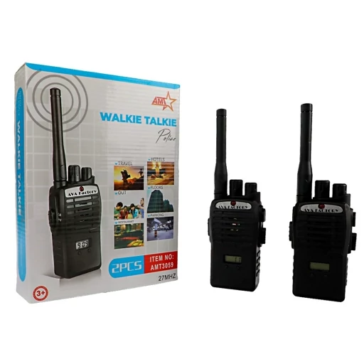 بیسیم اسباب بازی واکی تاکی مدل AMT3059 دوعددی به همراه دوعدد باطری و پیچ گوشتی کوچک جنس پلاستیکی