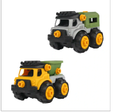 این محصول شامل دو عدد کامیون با طرح های مختلف می باشد که بوسیله پیچ چرخ ها و اتاق جلو و اتاق عقب به بدنه وصل شده اند و به همراه این محصول پیچ گوشتی و آچار هم هست که ساده تر کودکان بتوانند پیچ های ماشین را باز و تیکه های ماشین را جدا و مجدد سر هم کنند